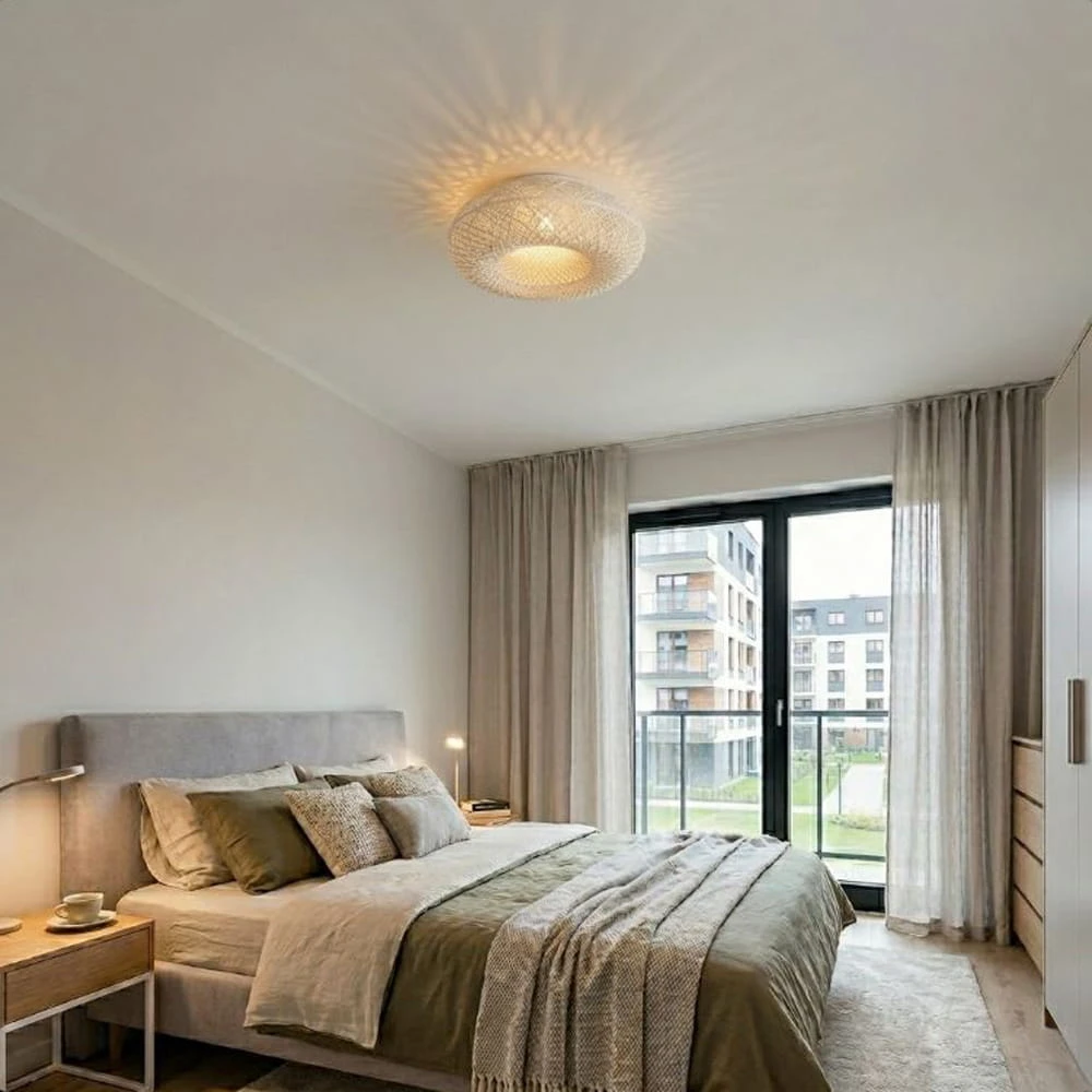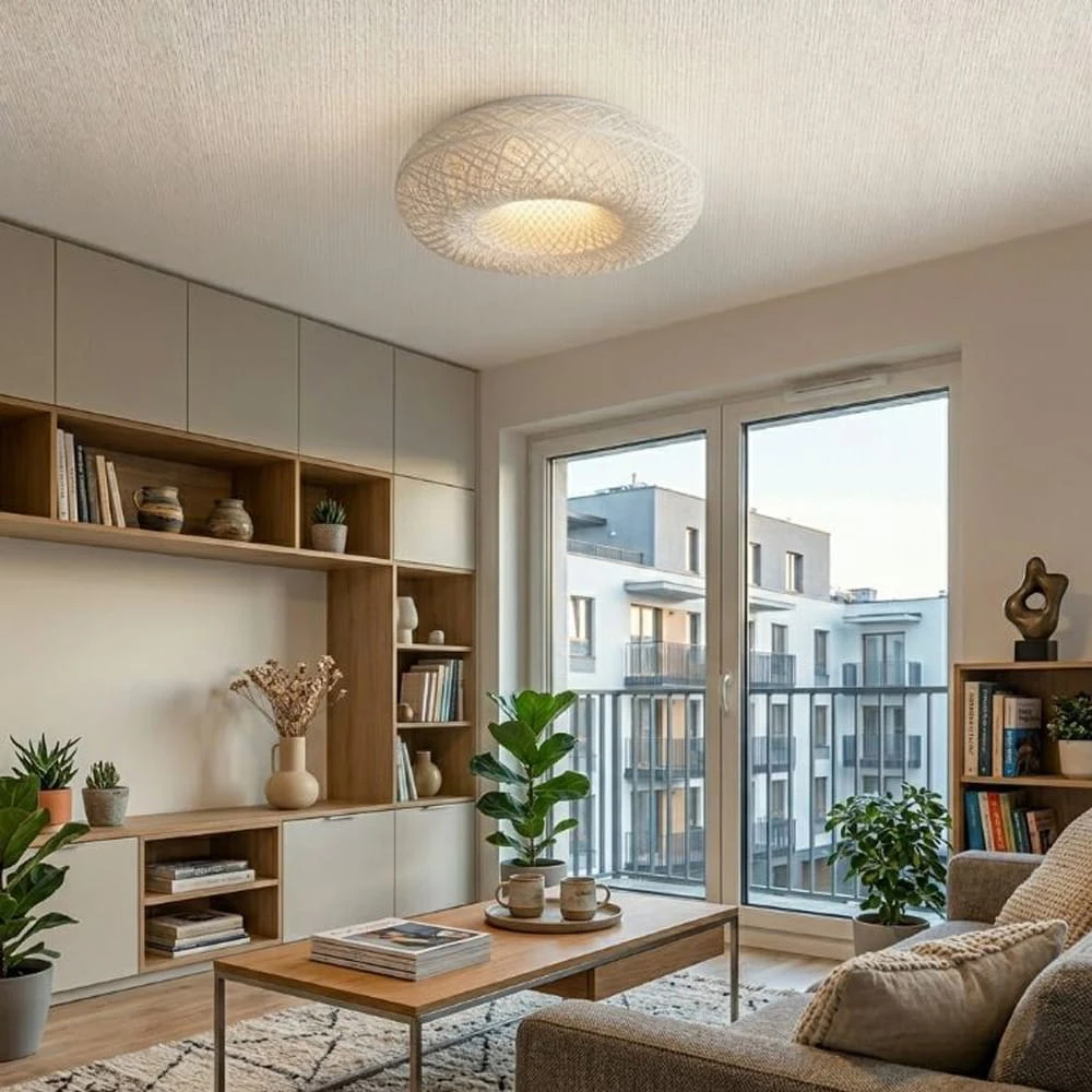 Oprawa sufitowa o unikalnej, ażurowej strukturze, która efektownie rozprasza światło, tworząc we wnętrzu przytulną atmosferę. Charakterystyczny kształt spłaszczonego pierścienia (torusa) oraz matowe, białe wykończenie sprawiają, że lampa doskonale komponuje się z naturalnymi materiałami. Znajdzie zastosowanie jako centralne oświetlenie w sypialni, salonie lub przedpokoju, wprowadzając harmonię i spokój właściwy dla estetyki Wabi Sabi. Dzięki niskiej konstrukcji plafon jest polecany również do pomieszczeń o mniejszej wysokości.