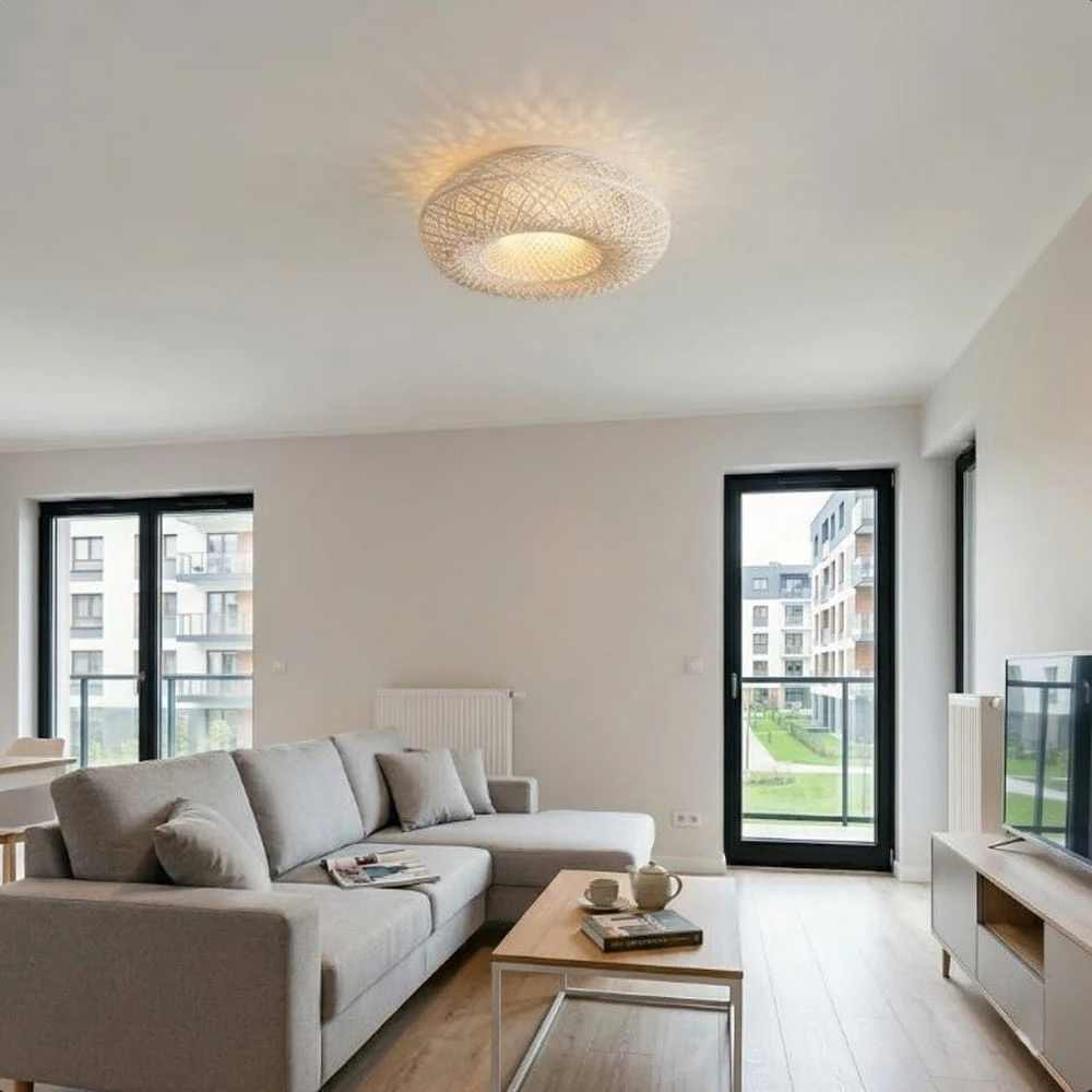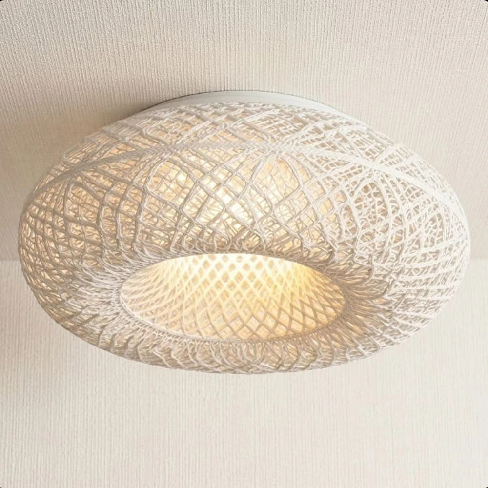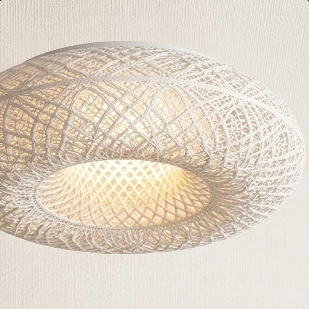 Efektowny plafon o ażurowym splocie i kształcie torusa, który wprowadza do wnętrza lekkość i naturalny charakter.